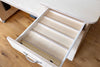 Dos cajones que incluyen: cajones para hilos y bobinas (2), extraíbles para prensar y cortar, cajones de almacenamiento con divisores reorganizables (6 medianos y 2 grandes)